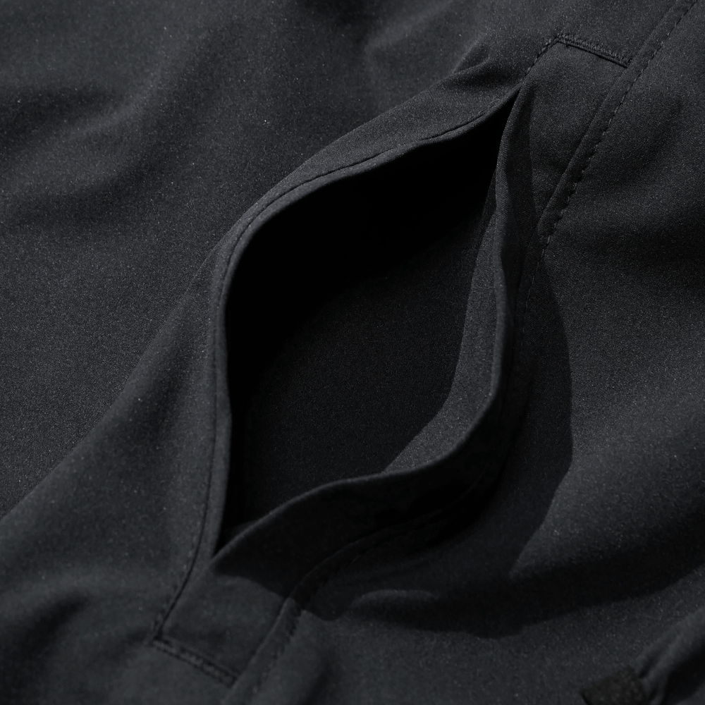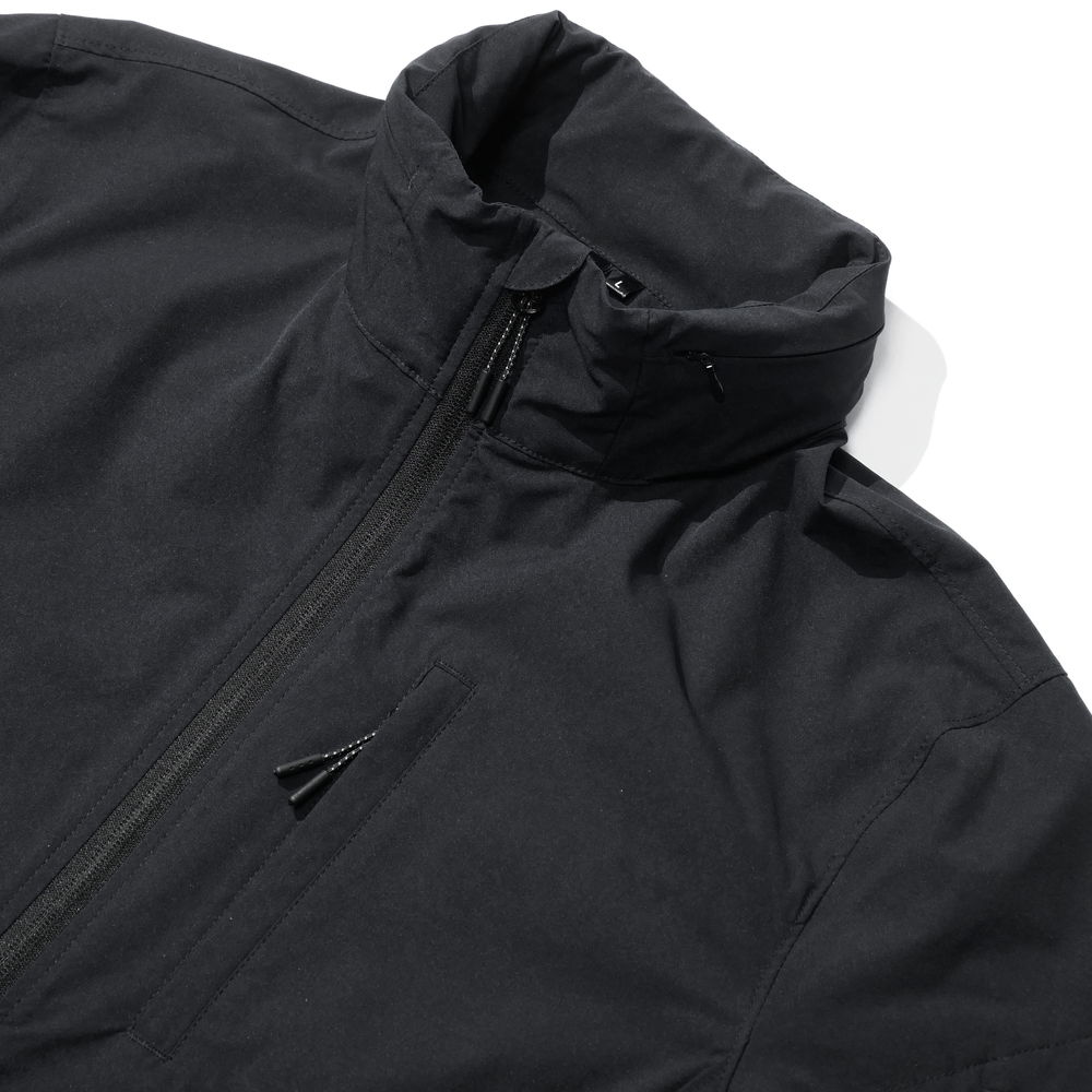 ストレッチ性のある薄手軽量生地を採用し、ジョギング等の激しい動きにも対応する軽量かつ軽快な着心地。腕まくりスタイルにも柔軟に対応しワイルドに着こなしも可能。襟にはフードを収納し利便性にも優れます。様々なライフスタイルに合せやすく普段着、スポーツ用、仕事用など幅広くシーンお使いいただけます。