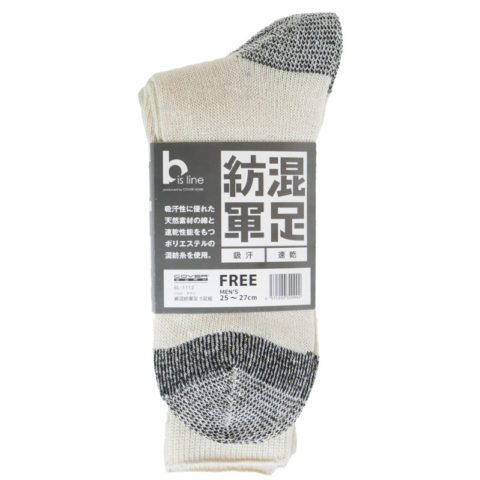 BL-1112 混紡軍足 カテゴリ:靴下ブランド:bis line製品タグ:吸汗性製品, 速乾性製品 キナリ キナリ 品番 BL-1112 品名 Bisline 綿混紡軍足 5足組 カラー キナリ サイズ MEN’S 25-27cm 原材料 ポリエステル 各アイコンに関しては性能評価・商品アイコンについてをご参照ください。 サイズ JANコード 25~27cm 4571200320992 BL-1112 商品画像ダウンロード (132 KB) 関連商品 関連商品はありません